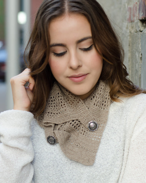 Simplicity meets modern design in this intermediate level crocheted cowl made using one skein of fingering weight 100% Kyrgyz Cashmere. Men and women alike will love wearing the Strata Cowl with its deceptively simple crochet design that provides structure for the cowl while remaining soft and drapey.